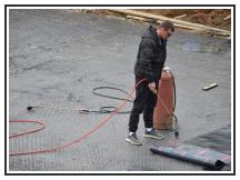 На объекте идут подготовительные работы - гидроизоляция бетонной плиты, чтобы приступить к строительству фундамента здания.