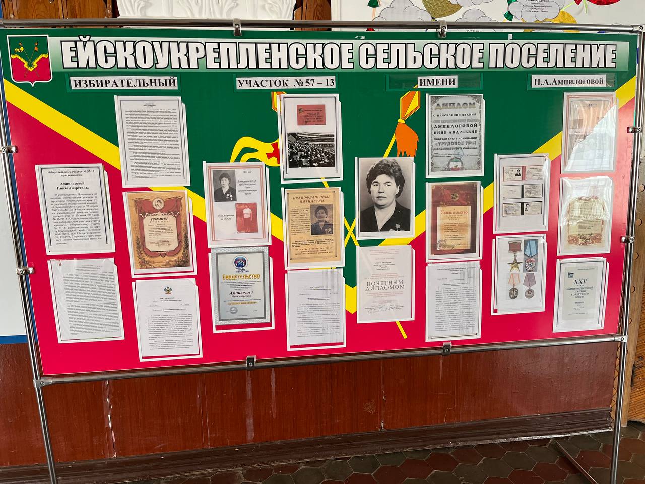 В целях повышения электоральной активности избирателей, привлечения внимания к историко-культурному наследию муниципального образования Щербиновский район, с 2017 года избирательный участок № 57-13 имеет статус именного – имени Ампилоговой Нины Андреевны.