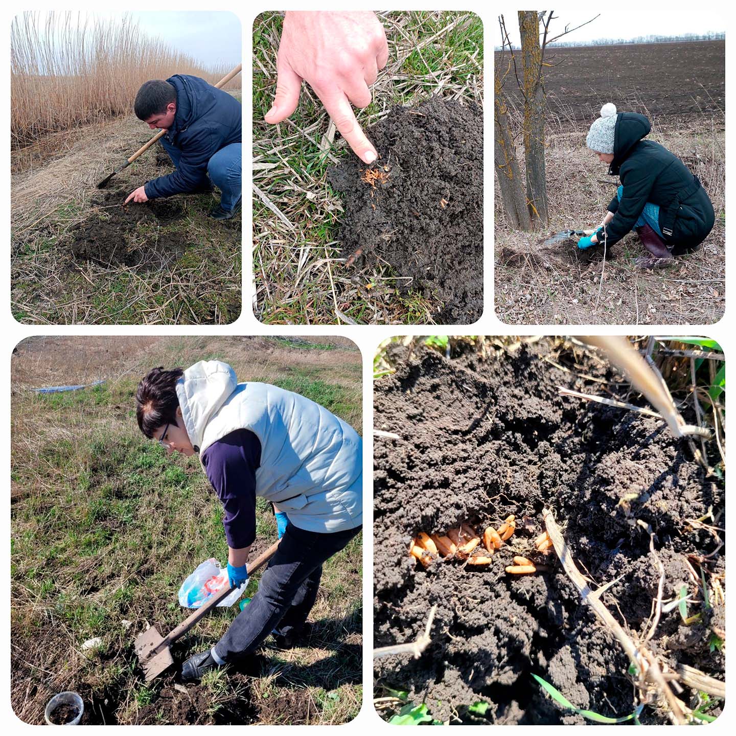 Специалисты филиала проводят почвенные раскопки для выявления зимующего запаса саранчовых, с целью определения мест заселения. Кубышки азиатской перелетной саранчи выявляются преимущественно в плавневой зоне края вблизи водоемов, лиманов. Отмечается, что кубышки хрупкие, распадаются на отдельные яйца, легко разрушаются, находятся в хорошем состоянии. Специалисты филиала отмечают, что перезимовка прошла благополучно. Поражения грибными болезнями не отмечено.