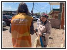 Волонтеры района вручили жителям символ Дня Победы – Георгиевскую ленточку.