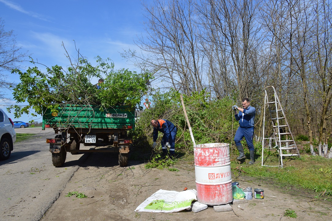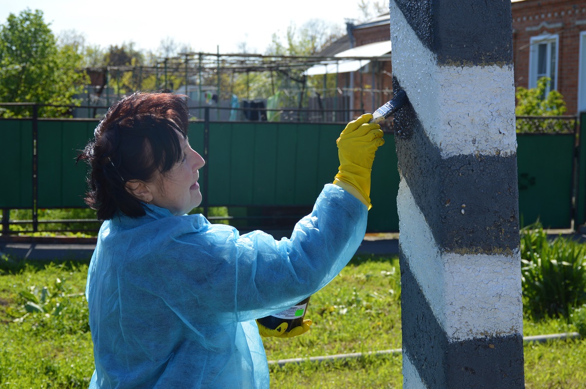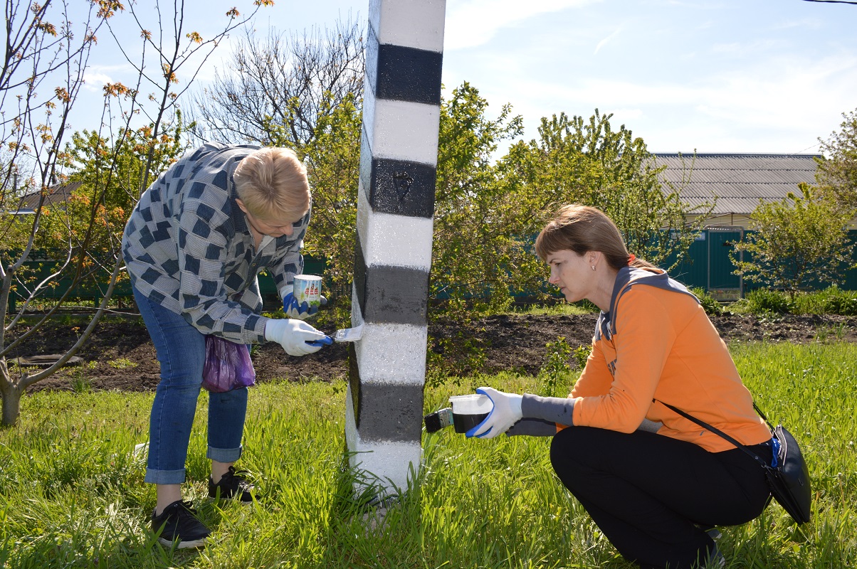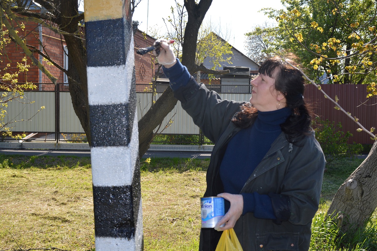 Сегодня все вместе дружно наводили порядок – белили деревья, убирали общественные территории от мусора, косили траву, занимались покраской дорожных знаков, столбов, остановок общественного транспорта. Особое внимание было уделено уборке территории при въезде в станицу («под мостом»).