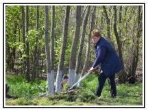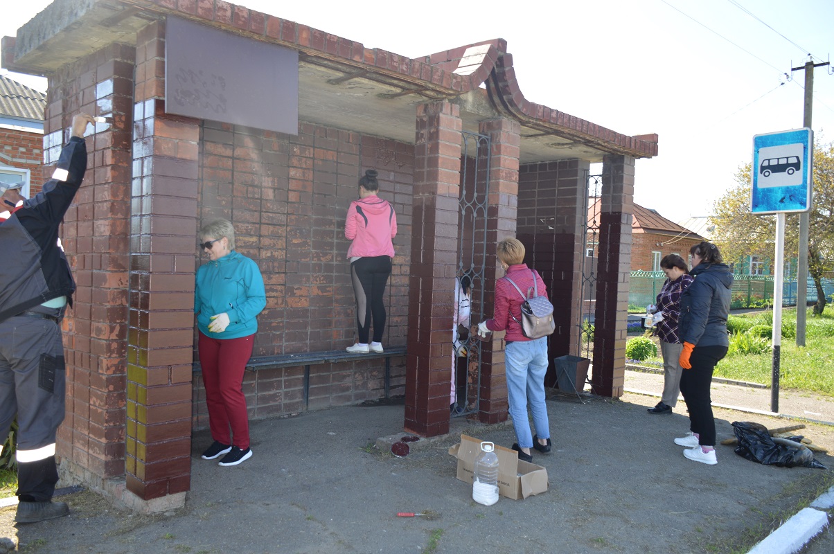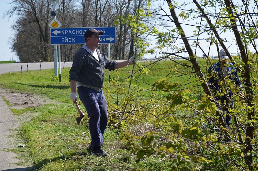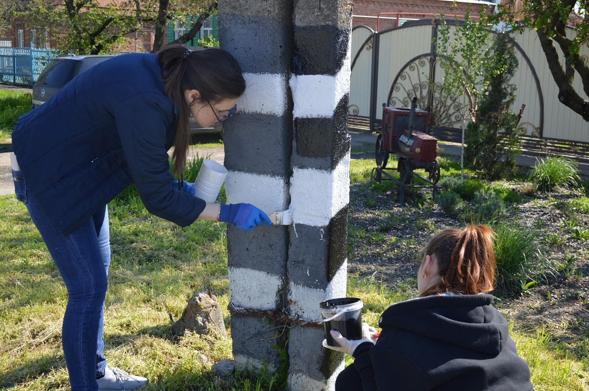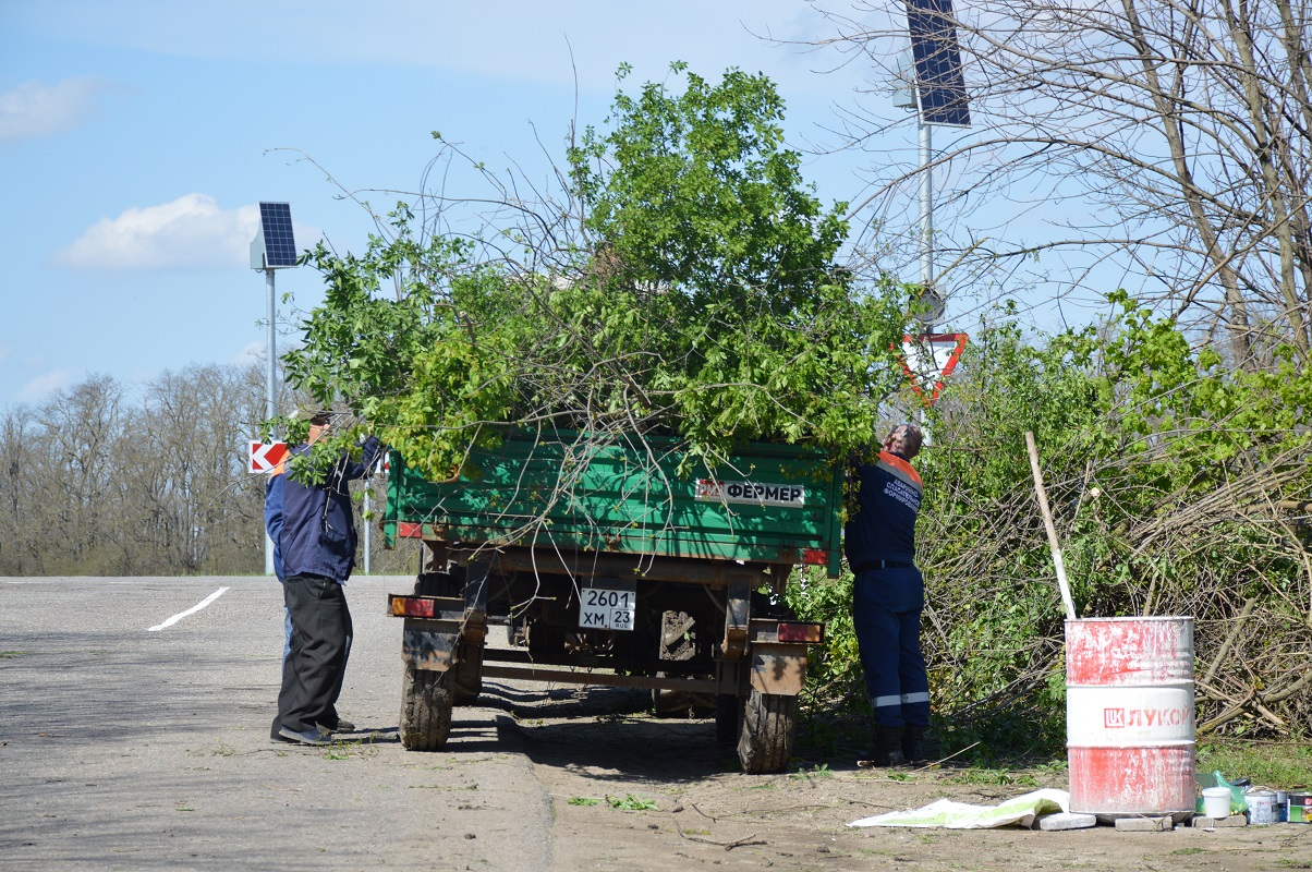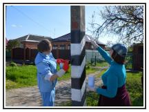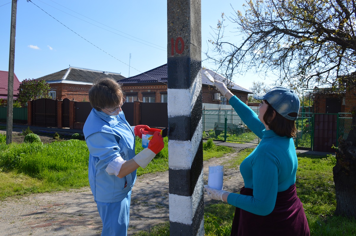 Сегодня все вместе дружно наводили порядок – белили деревья, убирали общественные территории от мусора, косили траву, занимались покраской дорожных знаков, столбов, остановок общественного транспорта. Особое внимание было уделено уборке территории при въезде в станицу («под мостом»).