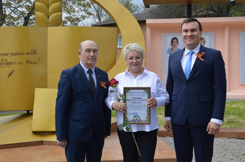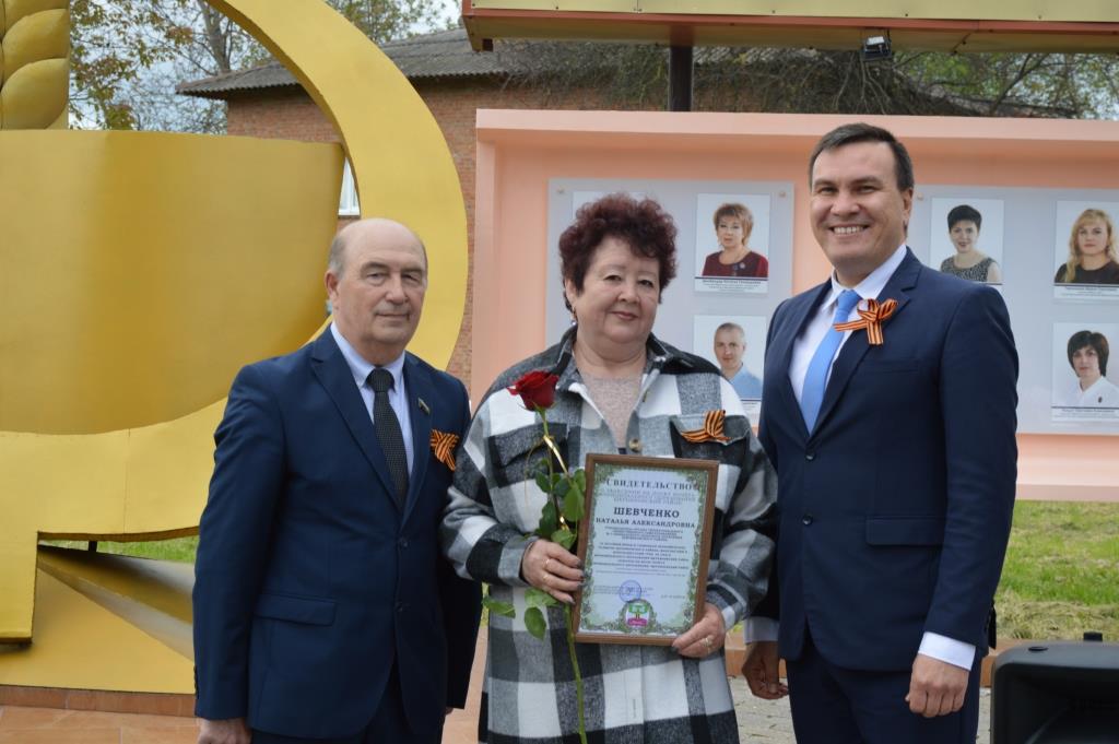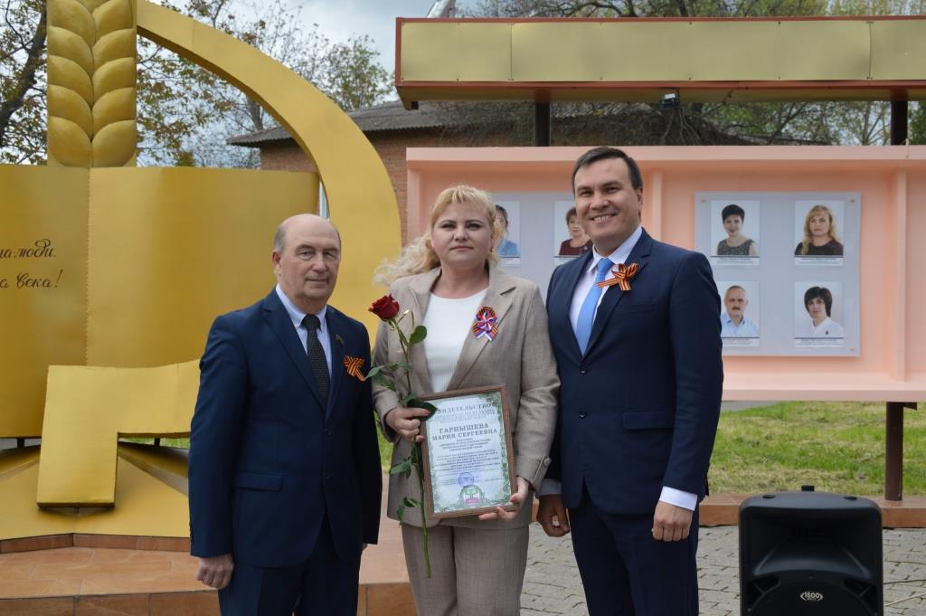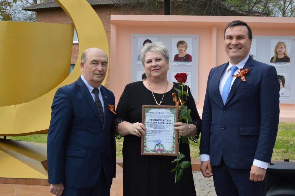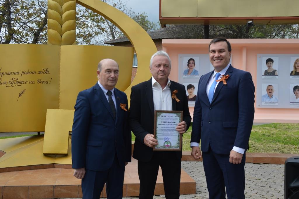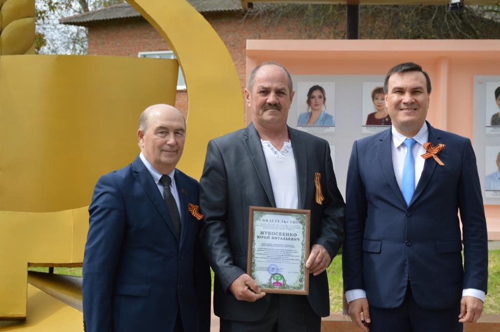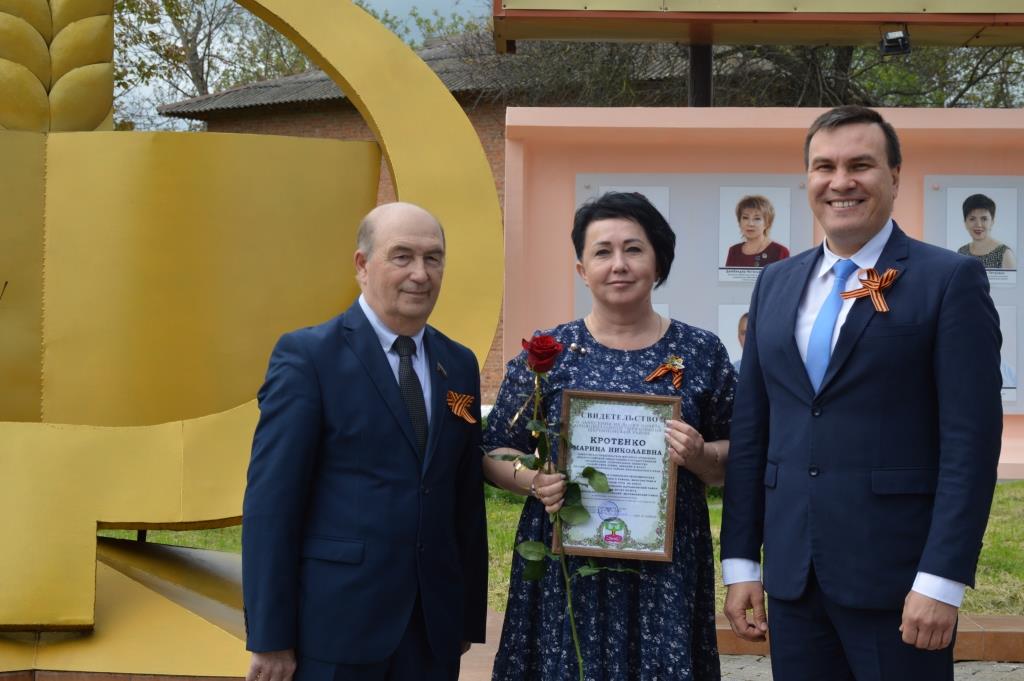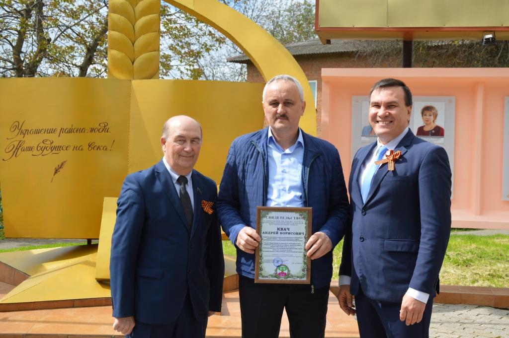 Свидетельства о занесении на Доску Почёта нашим землякам вручили заместитель главы Дмитрий Агашков и председатель Совета муниципального образования Щербиновский район Михаил Кряжов.