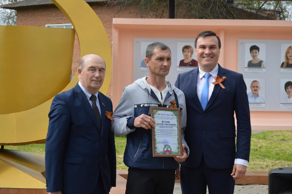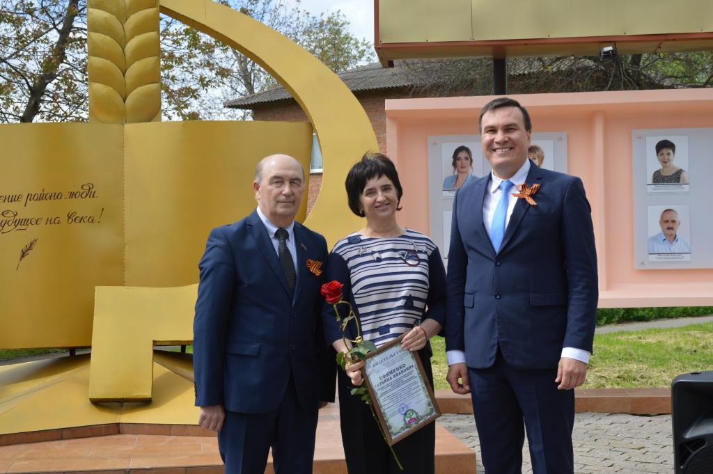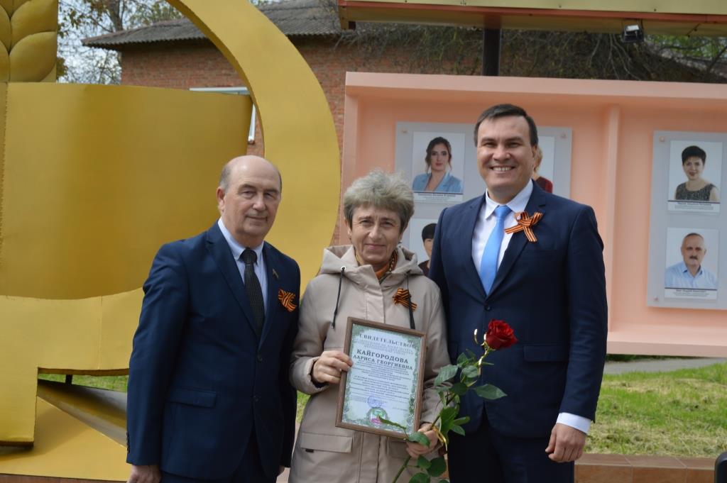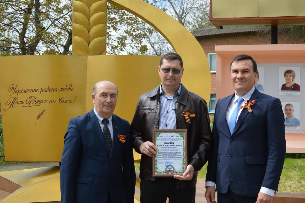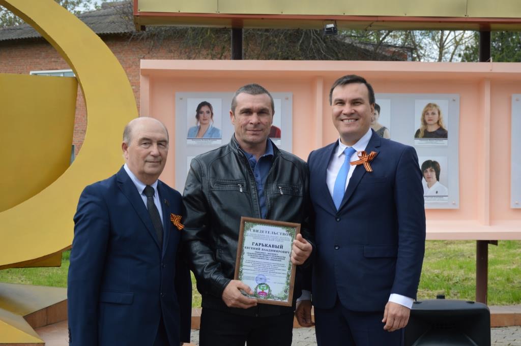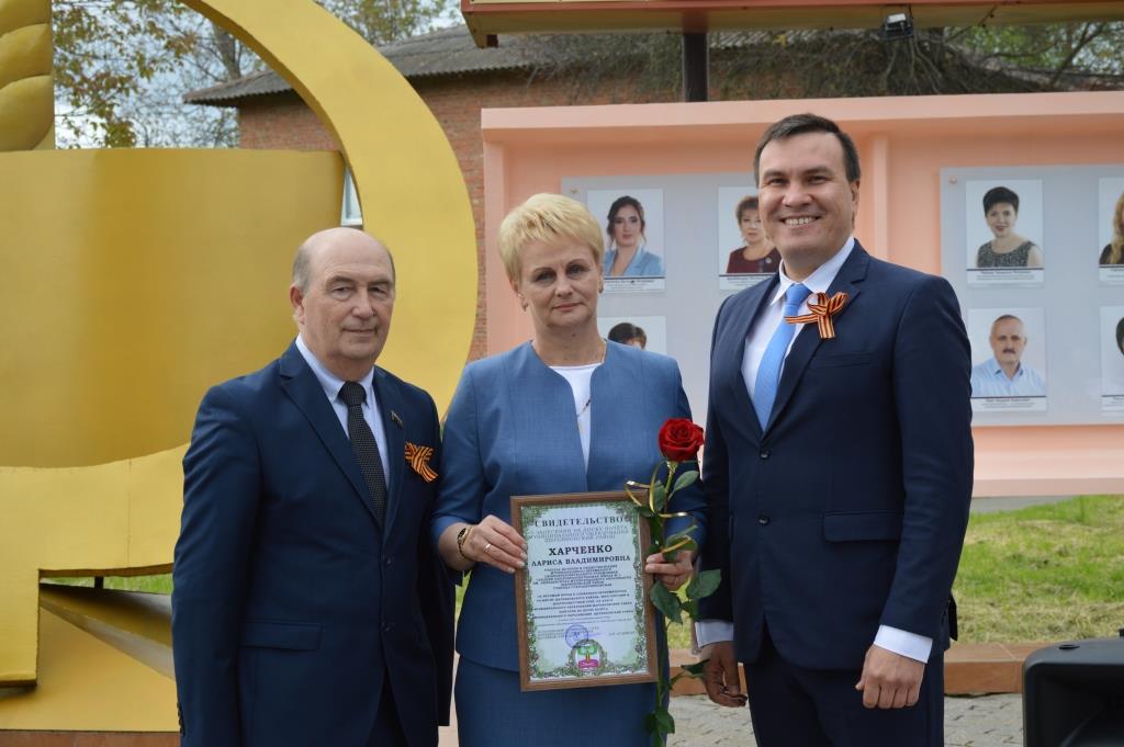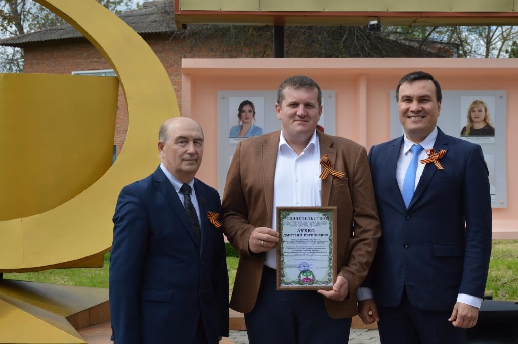 Свидетельства о занесении на Доску Почёта нашим землякам вручили заместитель главы Дмитрий Агашков и председатель Совета муниципального образования Щербиновский район Михаил Кряжов.