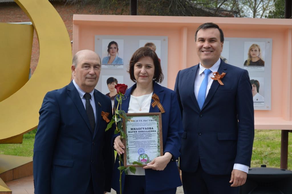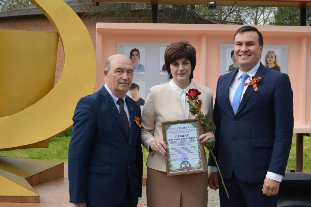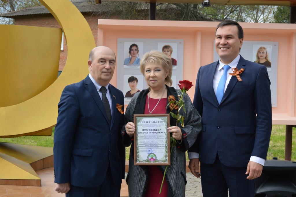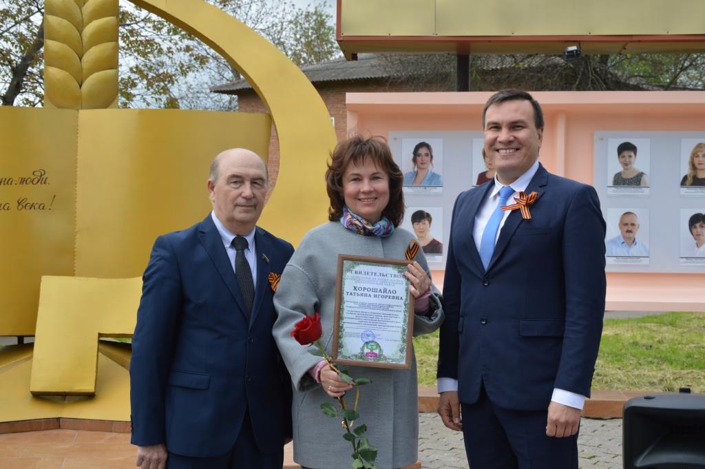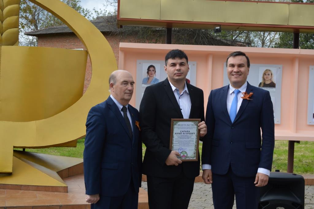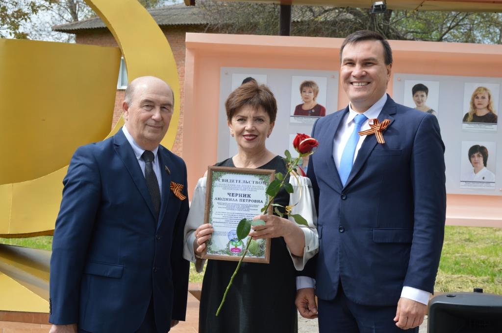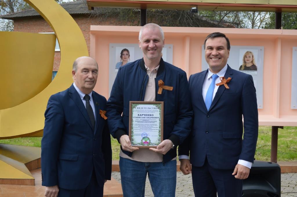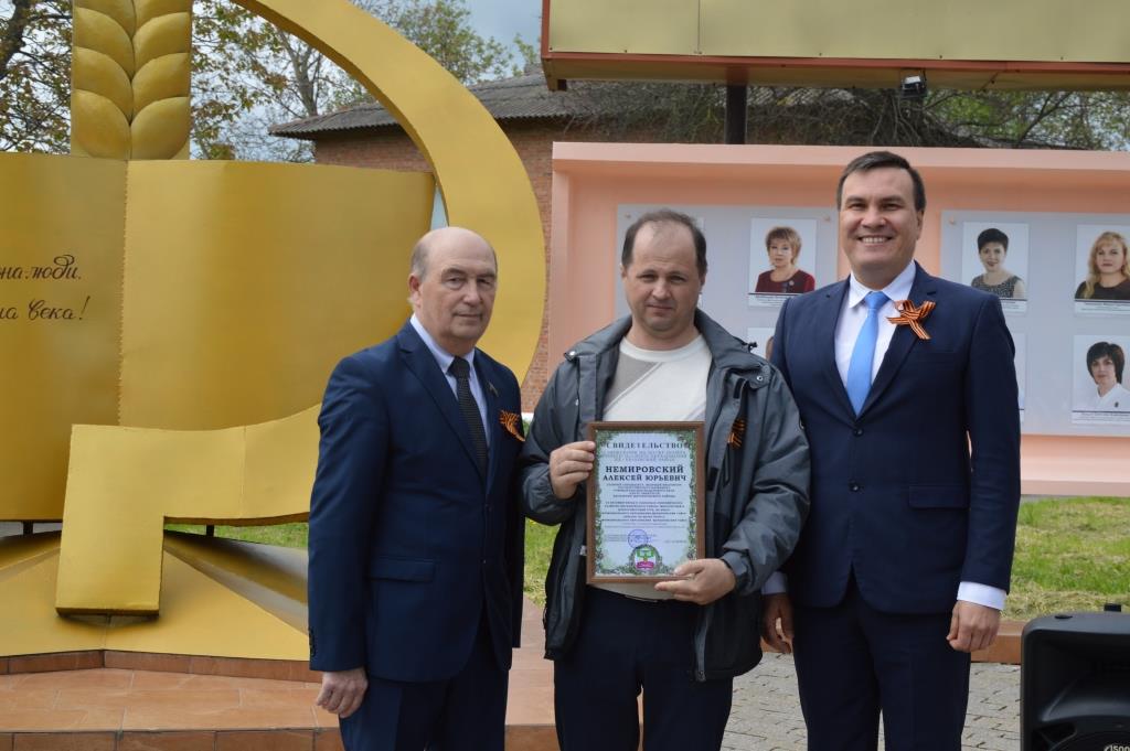 Свидетельства о занесении на Доску Почёта нашим землякам вручили заместитель главы Дмитрий Агашков и председатель Совета муниципального образования Щербиновский район Михаил Кряжов.