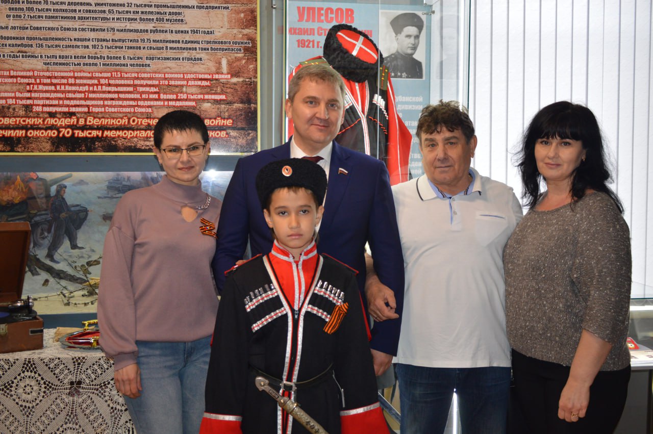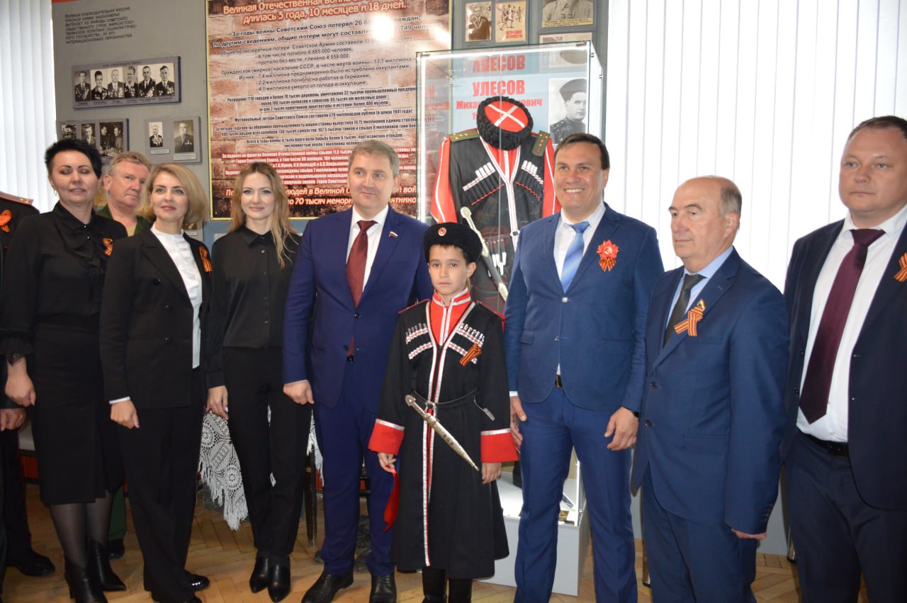 В военном зале Старощербиновского историко-краеведческого музея имени М.М. Постернак сегодня открылась новая экспозиция, посвященная нашему земляку, участнику Великой Отечественной войны Михаилу Улесову. Эта экспозиция подарена музею внуком Михаила Степановича депутатом Государственной Думы Российской Федерации Ламейкиным Дмитрием. Сегодня в музее прошло торжественное открытие экспозиции. С приветственными словами к собравшимся обратились депутат Государственной Думы Дмитрий Ламейкин, заместитель главы района Дмитрий Агашков, председатель Совета муниципалитета Михаил Кряжов.
