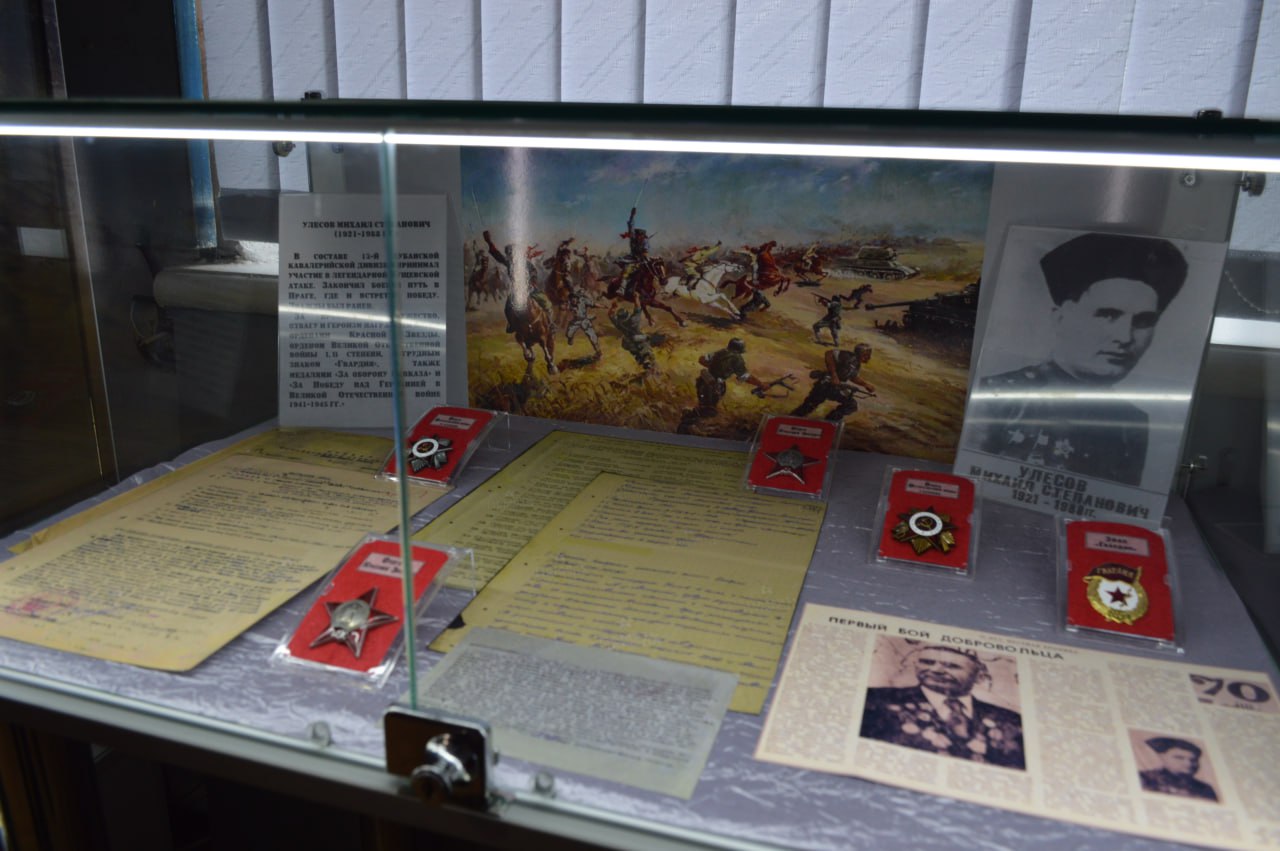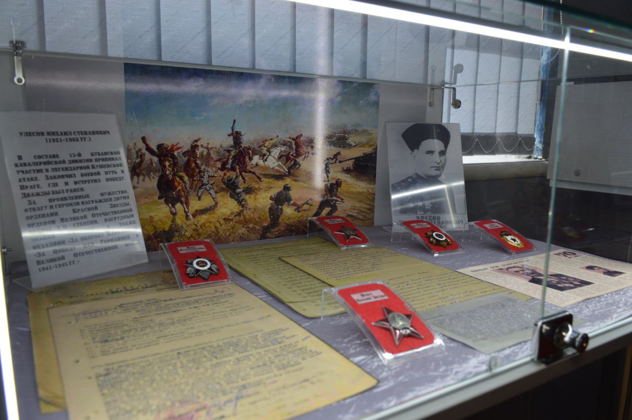 Михаил Степанович Улесов – ветеран Великой Отечественной войны. В составе 13-й Кубанской кавалерийской дивизии принимал участие в легендарной Кущевской атаке. Закончил боевой путь в Праге, где и встретил Победу. Дважды был ранен. За проявленные мужество, отвагу и героизм награжден двумя орденами Красной Звезды, орденом Великой Отечественной Войны I, II степени, нагрудным знаком «Гвардия», а также медалями «За оборону Кавказа» и «За победу над Германией в Великой Отечественной Войне 1941-1945 гг.». Историческая память о героях и участниках Великой Отечественной войны передается из поколения в поколение. В их честь названы населенные пункты, улицы, образовательные организации. Их имена увековечены на мемориальных плитах, памятниках и досках. И наша главная задача – сохранить и передать эту память потомкам.