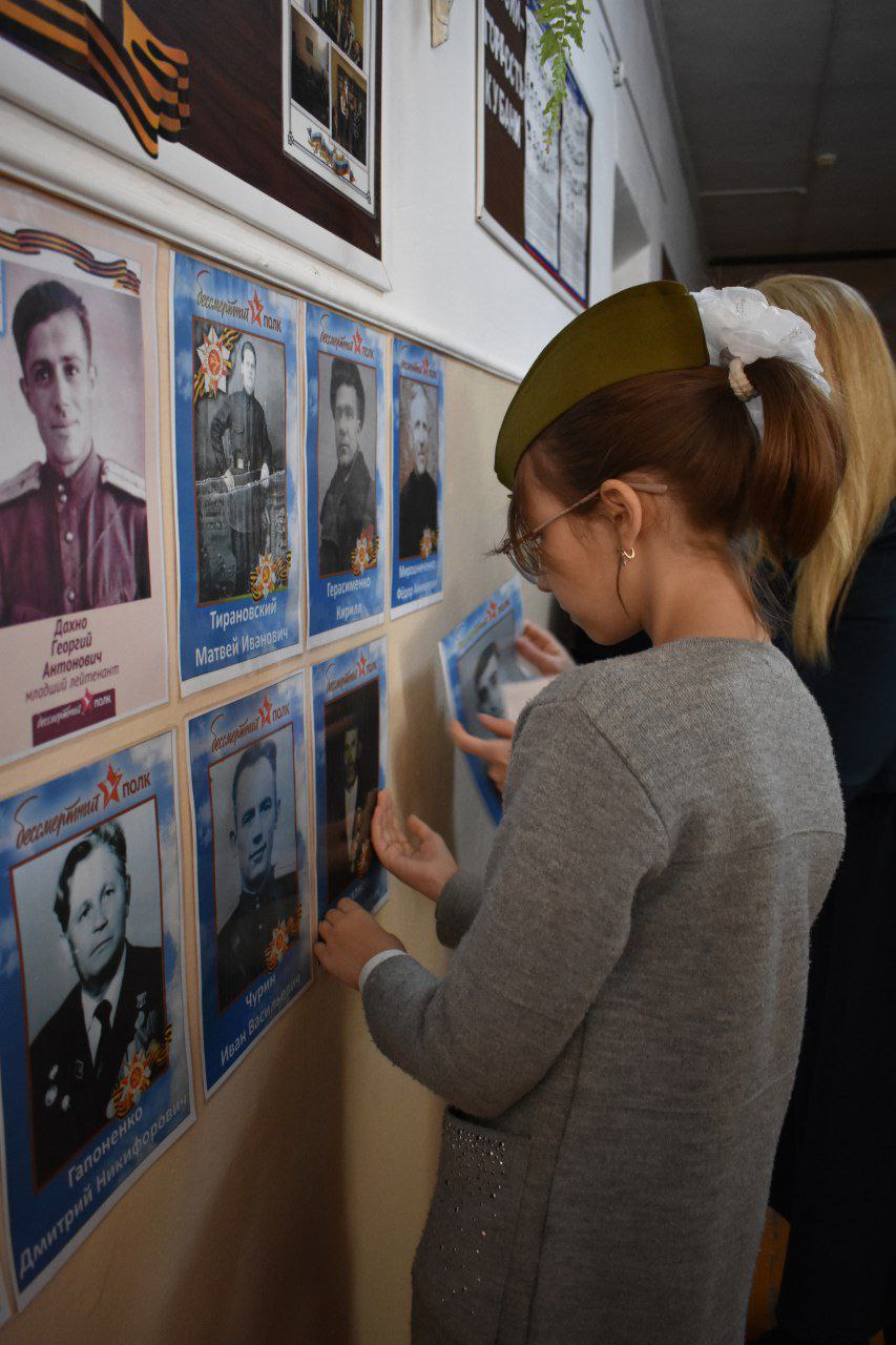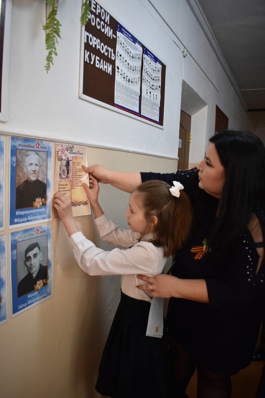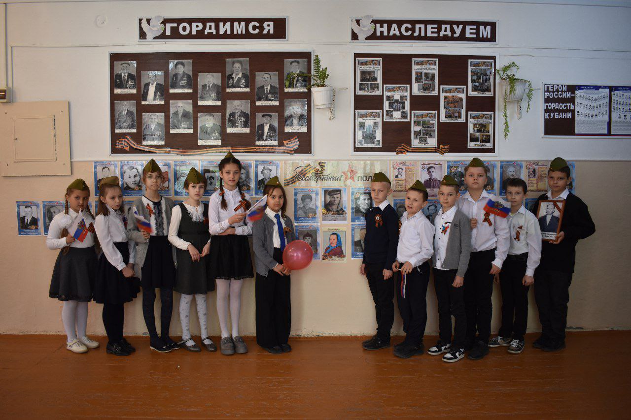 На торжественных линейках присутствовали заместители главы района, председатель Совета муниципалитета Михаил Кряжов, главы сельских поселений района. В этом году акция «Бессмертный полк» прошла в новом формате. «Текла река бессмертного полка» не по улицам станиц и сел, а в стенах образовательных учреждений района. Мы помним...Мы гордимся...