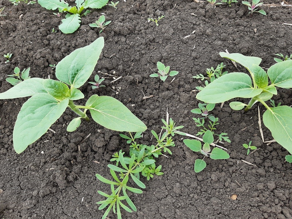 Проходящие осадки способствовали массовому появлению сорной растительности на посевах подсолнечника. Основными сорняками в посеве являются: из двудольных видов - амброзия полыннолистная, виды мари, осот огородный, паслен черный, канатник Теофраста; из злаковых - овсюг обыкновенный, пырей ползучий, гумай и др.
