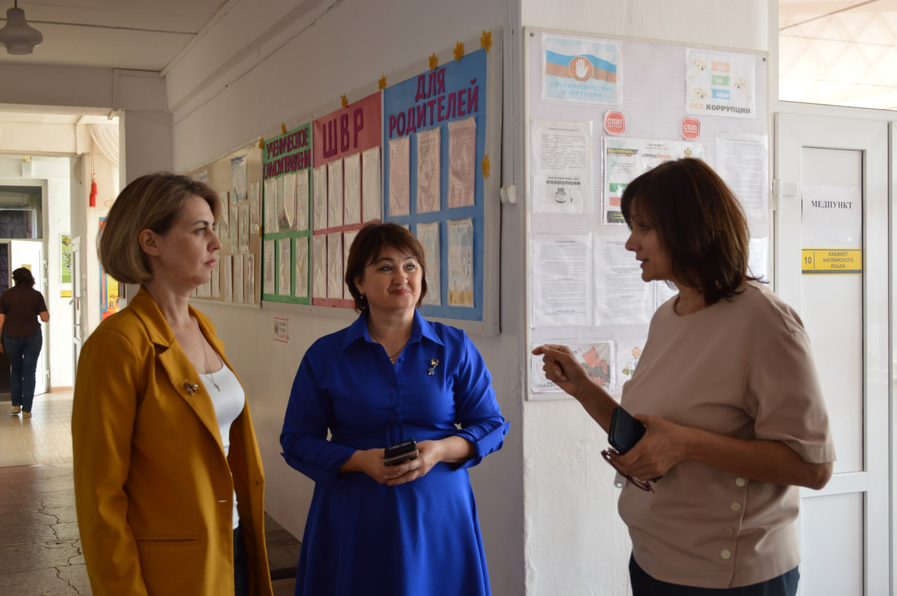 Заместитель главы района Виктория Савина выехала в СОШ № 1 станицы Старощербиновской.
