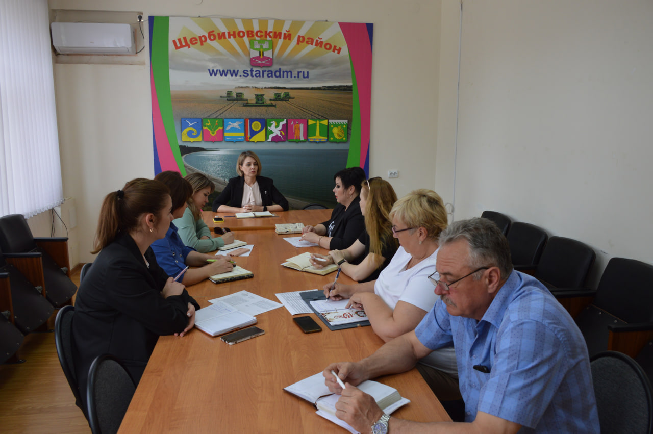 Заместитель главы района Виктория Савина, глава Старощербиновского сельского поселения Юрий Зленко и рабочая группа обсудили вопросы проведения праздничных мероприятий, посвящённых Международному дню защиты детей, которые пройдут 1 июня.