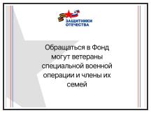 В Фонде «Защитники Отечества», созданном по поручению Президента, ветераны СВО и их семьи получат помощь и поддержку.