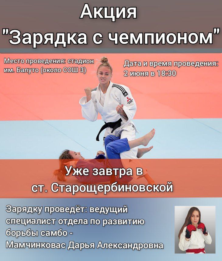 Приглашаем активную молодежь Щербиновского района принять участие в акции "Зарядка с чемпионом"