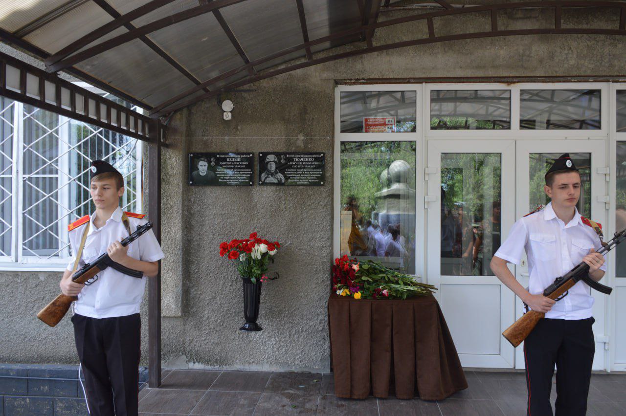 Сегодня в станице Новощербиновской на здании агрофирмы «Новощербиновская» торжественно открыты мемориальные доски работникам фирмы, погибшим при исполнении служебного воинского долга в ходе СВО Дмитрию Белому и Александру Ткаченко.