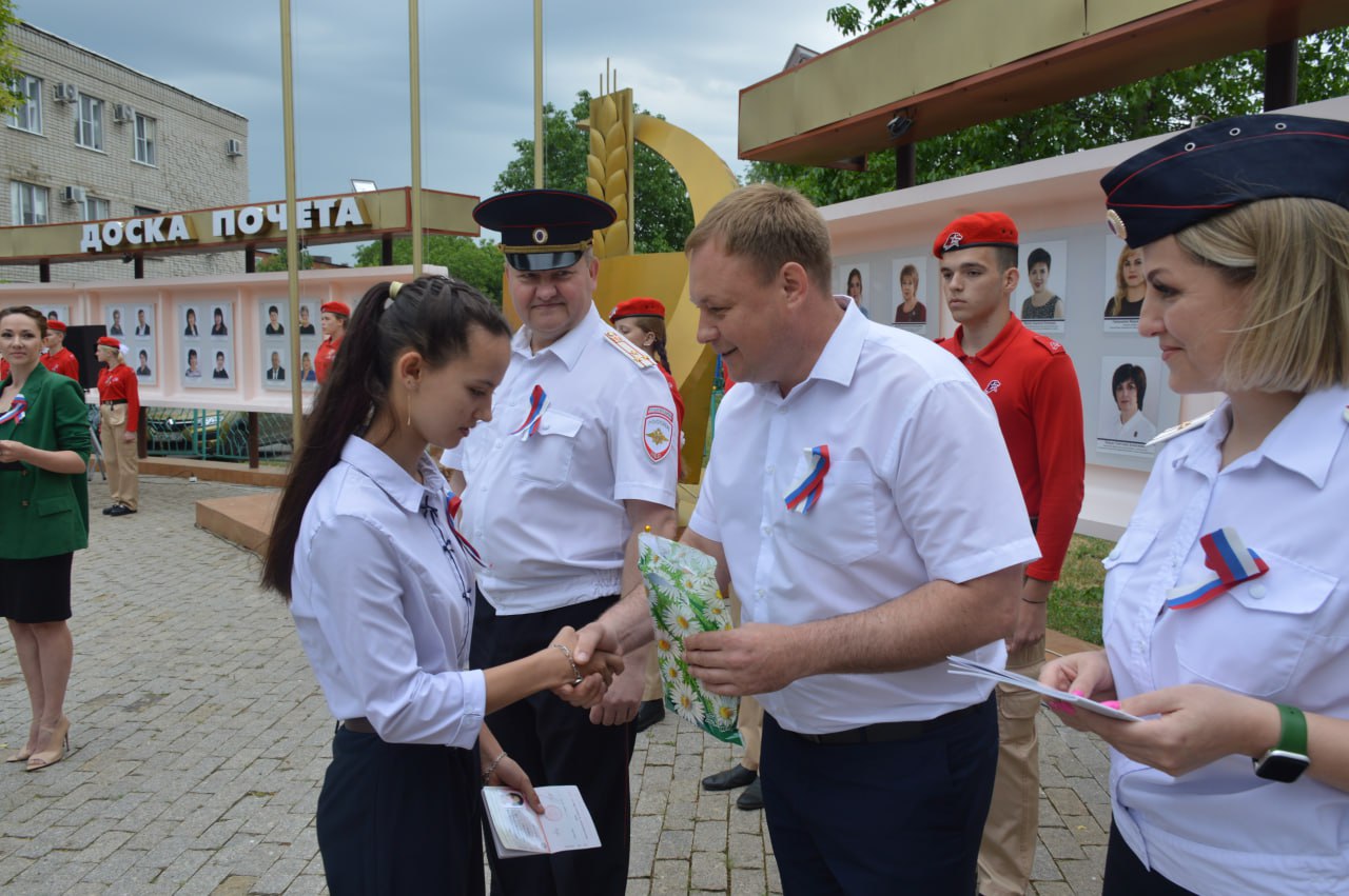 В честь Дня России в станице Старощербиновской прошло торжественное поднятие Государственного флага Российской Федерации