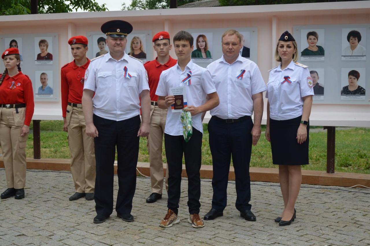 С праздником всех присутствующих поздравили исполняющий полномочия главы района Сергей Дормидонтов, председатель Совета муниципалитета Михаил Кряжов, глава Старощербиновского сельского поселения Юрий Зленко, настоятель храма Покрова Пресвятой Богородицы станицы Старощербиновской протоиерей Василий Кривов, начальник Отдела МВД России по Щербиновскому району, полковник полиции Владимир Крикун. Право поднять флаги было предоставлено обучающимся СОШ № 2 активистам местного отделения Щербиновского района Всероссийского детско-юношеского военно-патриотического общественного движения «ЮНАРМИЯ» Море Юрию, Дорошенко Александре, Маринину Владиславу. Сегодня флаг России – «государственный триколор» - это официальный государственный символ, наряду с гербом и гимном Российской Федерации. Цвета флага неофициально трактуются следующим образом: белый цвет символизирует мир, синий – цвет веры и постоянства, красный – энергия, сила, кровь, пролитая за Отечество. На праздничном мероприятии юным щербиновцам были вручены паспорта гражданина Российской Федерации. Церемонию вручения провели Сергей Юрьевич, Владимир Иванович и начальник отдела по вопросам миграции Отдела МВД России по Щербиновскому району Елена Чуднова.
