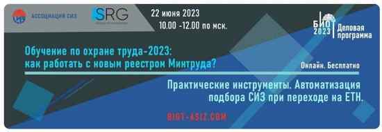 ГКУ КК ЦЗН Щербиновского района информирует, что Ассоциация разработчиков, изготовителей и поставщиков средств индивидуальной защиты, г.Москва (далее – Ассоциация СИЗ) в рамках экосистемы БИОТ при поддержке Министерства труда и социальной защиты Российской Федерации 22 июня 2023 года в 10-00 часов проведет бесплатную онлайн-конференцию на тему: «Обучение по охране труда – 2023: как работать с новым реестром Минтруда? Практические инструменты. Автоматизация подбора СИЗ при переходе на Единые типовые нормы (далее – ЕТН)» (далее – конференция).