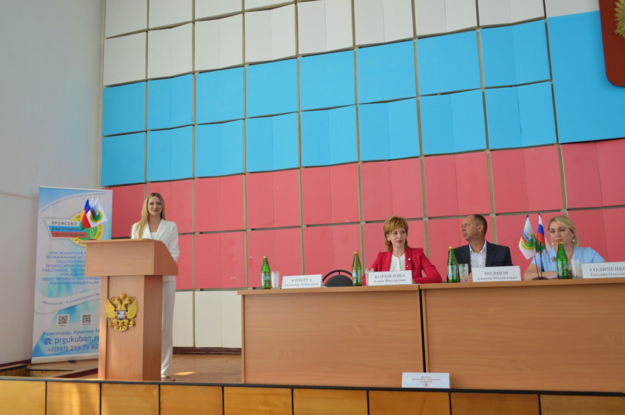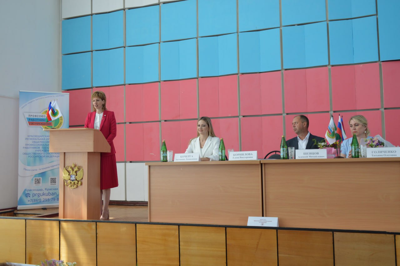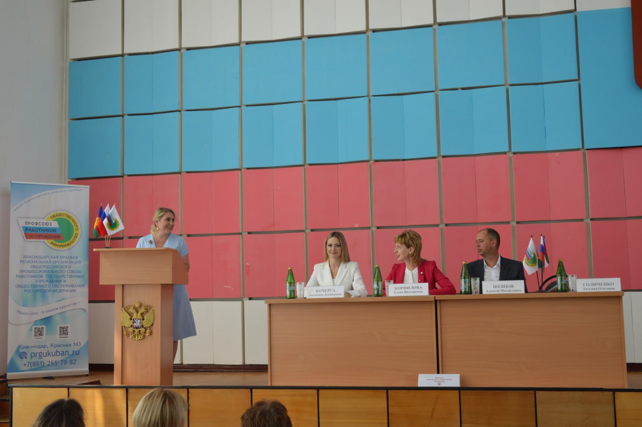 В работе конференции приняли участие председатель Краснодарской краевой региональной организации Профсоюза Елена Корнилова, заместитель главы района Антонина Кочерга, управляющий делами аппарата комитета Краснодарской краевой региональной организации Профсоюза Алексей Шевцов, заместитель председателя Щербиновской районной территориальной организации Профсоюза Татьяна Голиченко. Главным вопросом повестки дня стали выборы нового председателя Щербиновской районной территориальной организации Общероссийского профессионального союза работников государственных учреждений и общественного обслуживания Российской Федерации в связи с переездом в другой регион действующего председателя организации. На заседании комитета Щербиновской районной территориальной организации Профсоюза 9 июня создана рабочая группа по подготовке предложений по кандидатуре для избрания на должность председателя Щербиновской районной территориальной организации Профсоюза. На конференции была вынесена кандидатура Татьяны Голиченко- заместитель председателя Щербиновской районной территориальной организации Профсоюза.