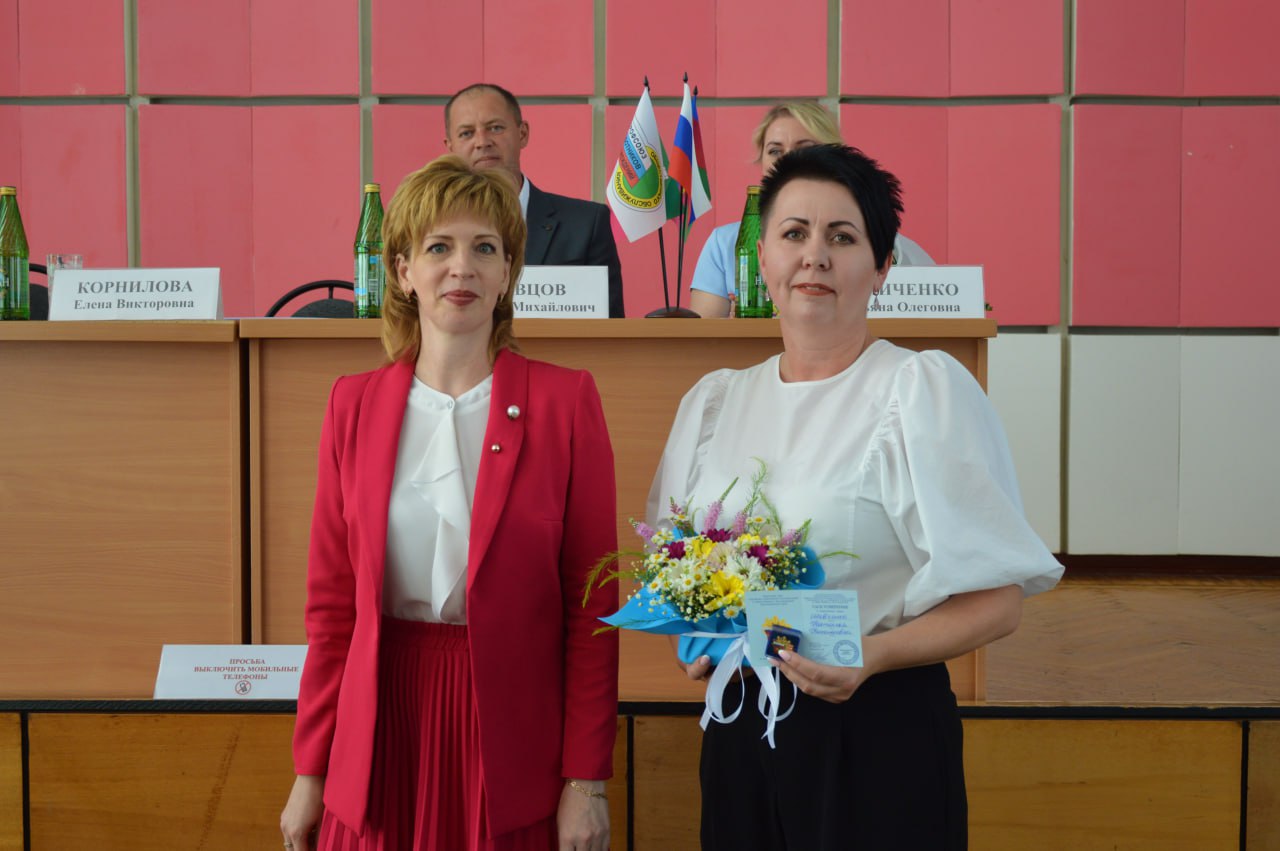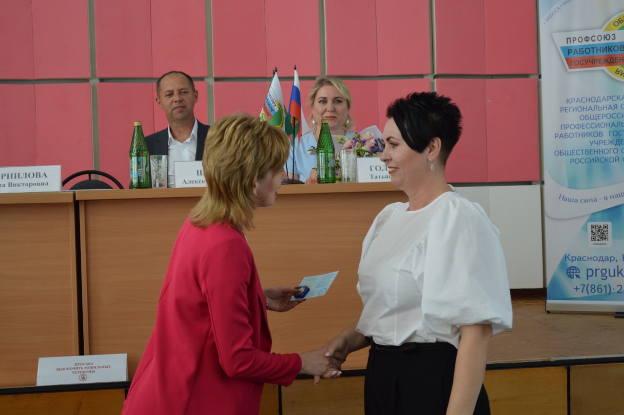 Елена Викторовна и Алексей Михайлович поздравили Татьяну Голиченко с избранием председателем Щербиновской районной территориальной организации Профсоюза! В завершении конференции в связи со 105-летием Общероссийского профессионального союза работников государственных учреждений и общественного обслуживания Российской Федерации Елена Викторовна наградила памятным нагрудным знаком «Профсоюз работников госучреждений и общественного обслуживания» руководителей членских организаций Профсоюза за укрепление и развитие социального партнерства, а также председателей первичных профсоюзных организаций и профсоюзных активистов.