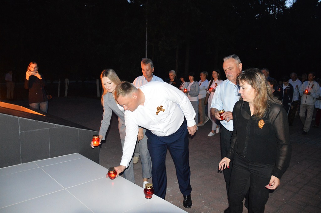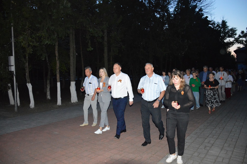 Сегодня, в День памяти и скорби - День начала Великой Отечественной войны, в 4 утра щербиновцы присоединились к гражданско-патриотической акции «Свеча памяти». Участники акции с зажженными свечами в руках прошли от здания администрации района к мемориальному комплексу в честь земляков, погибших в годы гражданской и Великой Отечественной войн. В акции приняли участие исполняющий полномочия главы района Сергей Дормидонтов, заместитель главы Антонина Кочерга, глава Старощербиновского сельского поселения Юрий Зленко, председатель Совета Старощербиновского сельского поселения Александр Олешко, сотрудники администрации района и сельского поселения, организации района, молодёжь и жители станицы.