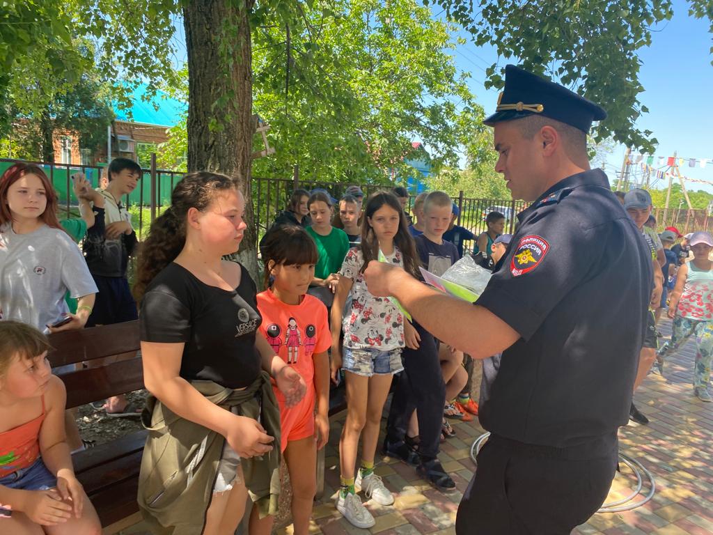 Госавтоинспекторы Щербиновского района совместно с инспектором по делам несовершеннолетних Отдела МВД России по Щербиновскому району посетили лагерь дневного пребывания на базе МБОУ СОШ 10 ст. Новощербиновской для проведения инструктажей по безопасности дорожного движения. В рамках проекта «Безопасность дорожного движения», профилактических мероприятий «МОТО-ВЕЛО-СИМ», а также в целях предупреждения дорожно-транспортного травматизма сотрудники полиции посетили образовательное учебное заведение, в котором провели уроки безопасности дорожного движения. Главной целью таких уроков является закрепление знаний, умений и навыков безопасного поведения детей на улице и в общественном транспорте. Госавтоинспектор совместно с учениками повторили Правила дорожного движения, места, предназначенные для безопасного перехода проезжей части, сигналы светофора и требования дорожных знаков. Школьникам были разъяснены правила безопасного поведения на улице вблизи проезжей части, напомнили как правильно переходить проезжую часть на регулированном и нерегулированном пешеходном переходе. Также особое внимание было уделено на то, что в плохую погоду и в темное время суток необходимо носить на одежде светоотражающие элементы, которые будут сигнализировать водителю о маленьком пешеходе. Также были разъяснены правила езды на велосипеде и мототранспорте. В завершении беседы ребята пообещали сотрудникам Отдела МВД России по Щербиновскому району строго соблюдать правила дорожного движения, а также напоминать родителям о их соблюдении.