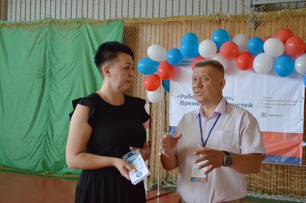 В спортивном оздоровительном комплексе станицы Старощербиновской открылась Всероссийская ярмарка трудоустройства