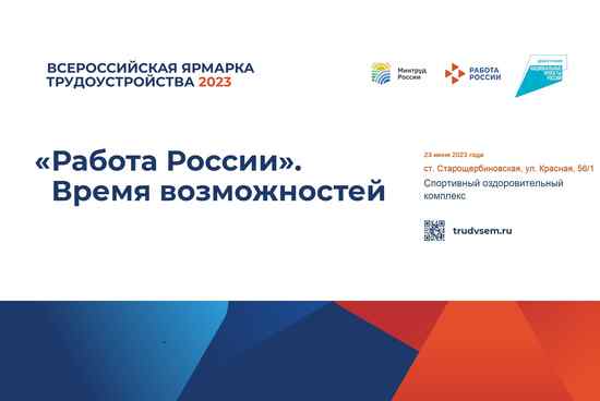 23 июня 2023 года в Спортивном оздоровительном комплексе ст. Старощербиновской состоялся федеральный этап Всероссийской ярмарки трудоустройства «Работа России. Время возможностей».