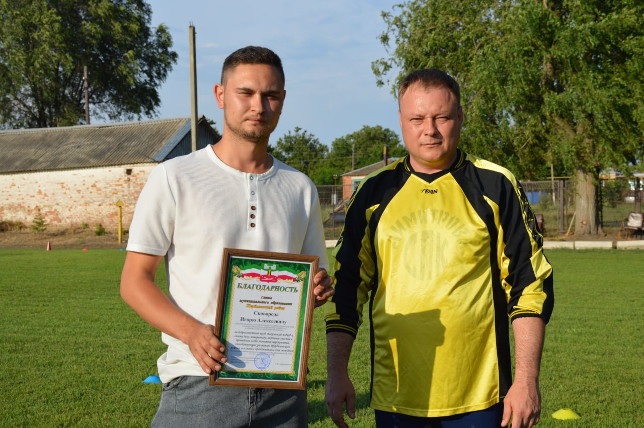 Вчера в станице Старощербиновской было «очень жарко», не только из-за высокой температуры воздуха, но и потому что в станице прошёл футбольный матч, приуроченный ко Дню молодёжи. Любители футбола и молодёжь собрались на футбольном поле возле старой СОШ № 4, чтобы поболеть за команду исполняющего полномочия главы района «Лидер», которую возглавил Сергей Юрьевич и команду молодёжи «Кристалл», капитаном которой стал Константин Губенко. Всех присутствующих в начале матча поприветствовал исполняющий полномочия главы Сергей Дормидонтов. За активное участие в третьем Всероссийском конкурсе молодежных проектов благодарностью председателя избирательной комиссии Краснодарского края награждена Дарья Мамчинковас. За профессиональное мастерство, образцовое выполнение трудовых обязанностей и новаторские идеи Сергей Юрьевич вручил молодым специалистам района, отличившимся работникам Благодарности главы муниципального образования Щербиновский район. Также, молодёжь поздравила председатель Щербиновской районной территориальной организации Профсоюза государственных учреждений Татьяна Голиченко. Она вручила молодежному профсоюзному активу профсоюзные билеты и подарочные сертификаты. Ну а после торжественной части прошёл футбольный матч между командами «Лидер» и «Кристалл». Несмотря на жаркий вечер, команды играли в полную силу и показали отличную игру! В итоге, после упорной борьбы со счетом 1:0 победила команда «Лидер». Кубки и медали игрокам вручил активный болельщик - председатель Совета муниципалитета, председатель Щербиновского районного С-вета ветеранов Михаил Кряжов. Лучшим нападающим признан Колесников Дмитрий, лучшим игроком стал Лубянец Александр, лучший защитник - Верхогляд Данил и лучший вратарь матча – Кулага Андрей.