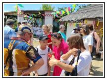 На подворье «Грамотейня» в течение всего дня было очень интересно. Любой желающий смог поучаствовать в мастер-классе по выпеканию пышек, спеть народные песни вместе с НФК "Журавка", пуститься в пляс под зажигательные песни вокальной группы "Сударушка", поиграть на музыкальных инструментах, проявить себя в спортивных соревнованиях.