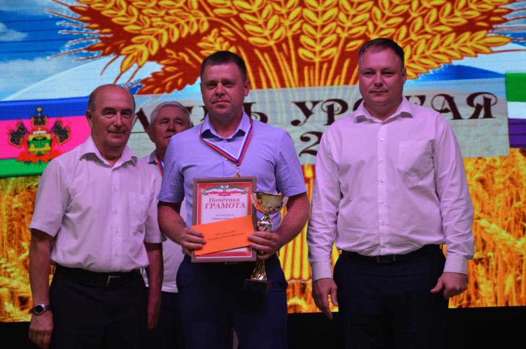 За I место награжден индивидуальный предприниматель глава крестьянского (фермерского) хозяйства Иван Кудряшов, получивший по 76,4 центнера с гектара озимой пшеницы, за II место награжден индивидуальный предприниматель главе крестьянского (фермерского) хозяйства Иван Кудряшов, получивший по 75,8 центнера с гектара озимой пшеницы и за III место награжден индивидуальный предприниматель глава крестьянского (фермерского) хозяйства Вадим Колесников, получивший по 71 центнеру с гектара озимой пшеницы.