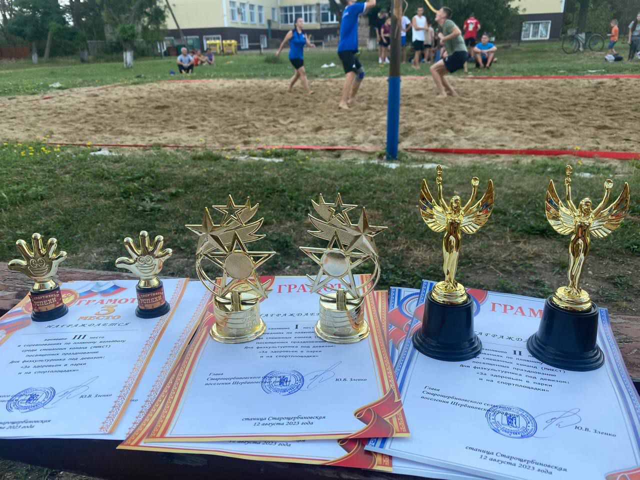 На базе СШ "Лидер" в станице Старощербиновской прошёл турнир по пляжному волейболу на призы главы Старощербиновского сельского поселения. По итогам соревнований первое место заняли Даниил Сидоренко и Вероника Старкова, второе - Александр Зубков и Диана Савостина, третье - у Дениса Тарана и Ксении Гордиенко.