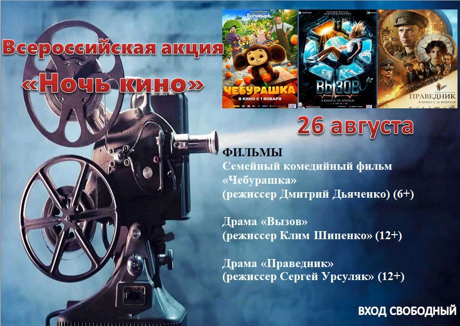 Кинотеатр «Родина» приглашает 26 августа на празднование Дня российского кино