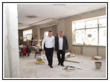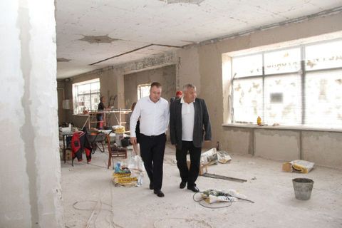 В Ейскоукрепленском сельском поселении Сергей Юрьевич и Владимир Викторович посетили сельский Дом культуры, где проходят работы по капитальному ремонту здания. Уже выполнены частично работы по фасаду здания, активно ведутся внутренние работы, выполнены перепланировка первого этажа здания и демонтажные работы на втором этаже.