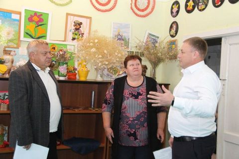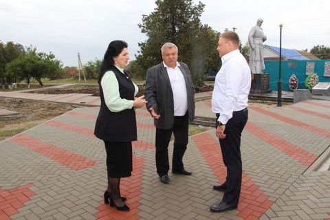 Исполняющий полномочия главы района Сергей Дормидонтов и Владимир Лыбанев после личного приема граждан посетили объекты строительства и капитальных ремонтов в Глафировском, Николаевском и Ейскоукрепленском сельских поселениях.