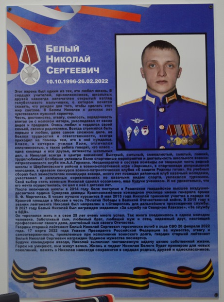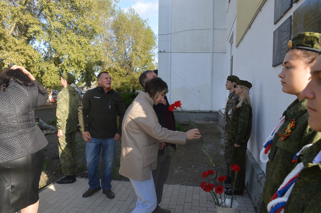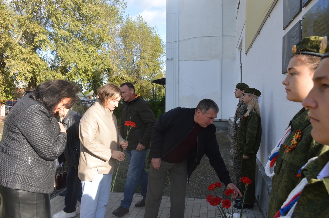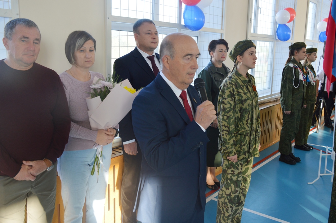 Сегодня в муниципальном бюджетном общеобразовательном учреждении средней общеобразовательной школе № 3 им. Е.И. Гришко станицы Старощербиновской в день 80-летия освобождения Краснодарского края от немецко-фашистских захватчиков, завершения битвы за Кавказ состоялась торжественная линейка «Гордимся подвигом защитников Кубани», в которой приняли участие исполняющий полномочия главы района Сергей Дормидонтов, председатель Совета муниципалитета Михаил Кряжов, начальник управления образования Ольга Приставка, а также родители выпускников школы, погибших при выполнении специальной военной операции на Украине Николая Белого, Дениса Бурбовского и родители Виктора Ковалева, погибшего на Донбассе в 2016 году. Сергей Дормидонтов и Михаил Кряжов обратились с поздравлениями к учителям и учащимся школы, выразили благодарность родителям погибших за достойное воспитание сыновей, пожелали всем крепкого здоровья и мирного неба над головой.