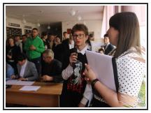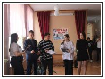 В качестве ведущей предвыборных дебатов выступила Советник директора по воспитанию - Квач Виктория Васильевна. Всего избирательной комиссией школы было зарегистрировано 4 кандидата на пост президента школы. На дебатах присутствовали представители 5-11 классов.