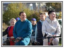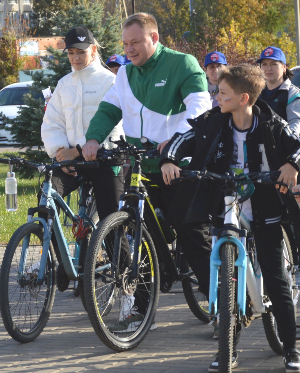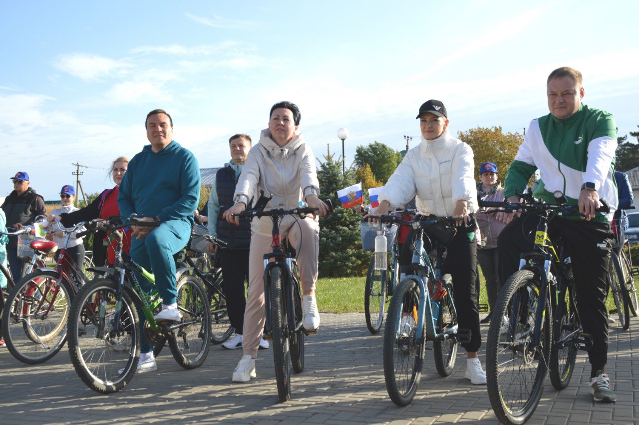 Отличная погода и настроение собрали более сотни человек для участия в велопробеге. Колону возглавили исполняющий полномочия главы района Сергей Дормидонтов, председатель Совета муниципалитета Михаил Кряжов и заместители главы района. Велопробег стартовал от спортивного комплекса «Энергия» и завершился возложением цветов на Аллее воинской и трудовой Славы.