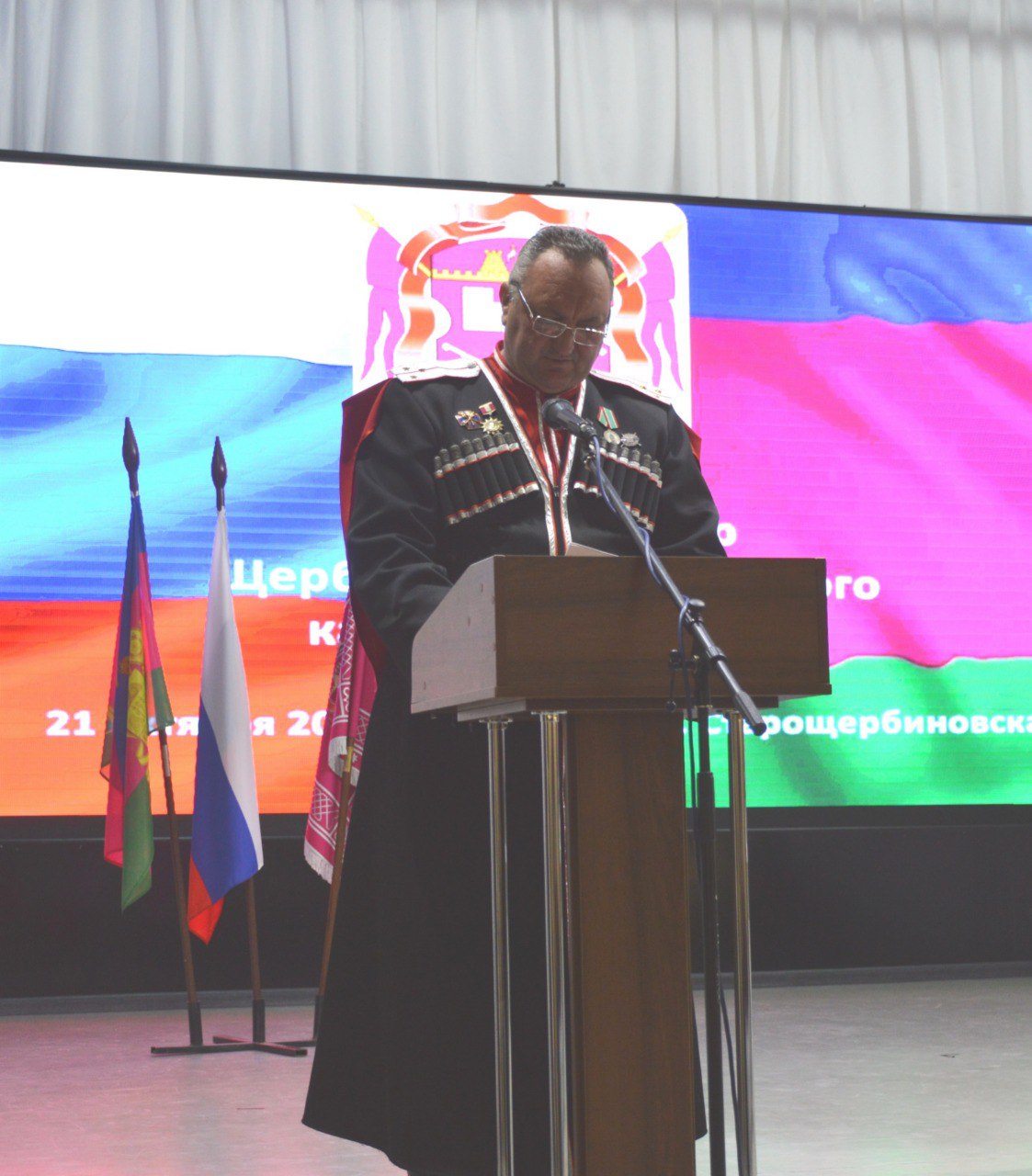 Всех тепло поприветствовал Сергей Дормидонтов и пожелал плодотворной работы. Традиционно мероприятие началось с молитвы. Выступил с отчетом исполняющий обязанности атамана Щербиновского районного казачьего общества - сотник Виталий Подолянко, судья районного казачьего общества - сотник Виктор Ковалев, председатель Совета стариков подъесаул Виктор Галкин. Отчет о работе щербиновских казаков принял Атаман Ейского казачьего отдела Константин Черный. Заслушали выступления Атаманов Глафировского, Николаевского хуторских казачьих обществ и представителя Кубанского казачьего войска. С Днем района и Днем станицы казаков поздравил священник храма Покрова Пресвятой Богородицы станицы Старощербиновской, иерей Гребешков Виталий и благословил на добрые дела