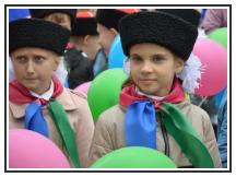 По центральной улице станицы Старощербиновской прошли юные казачата и казаки Щербиновского районного казачьего общества