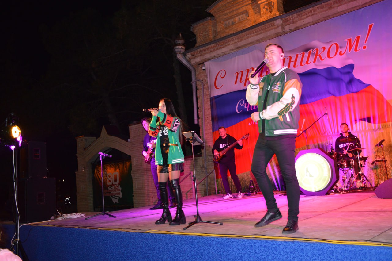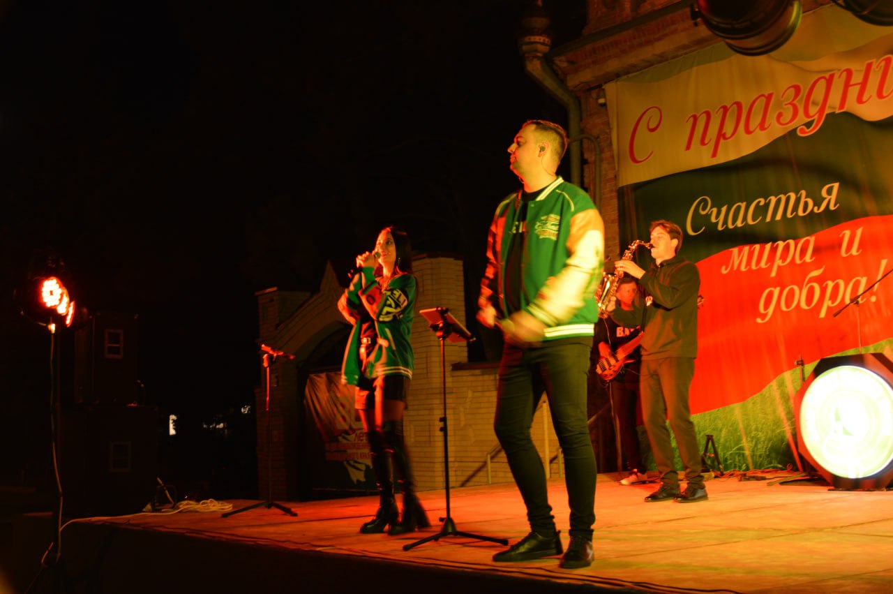 Вечернюю программу празднования Дня района и станицы Старощербиновской продолжило выступление кавер – группы " LIME BEND". А завершился праздничный день ярким файер шоу.