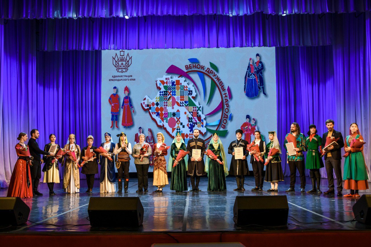 Вчера делегация района приняла участие в фестивале «Венок дружбы народов», который прошёл в г. Краснодаре. Традиционный краевой фестиваль национальных культур объединил сотни лучших фольклорных артистов со всей Кубани! В фестивале приняли участие национальные коллективы из Армавира, Краснодара, Новороссийска и Туапсинского района. Представители самых разных национальностей Кубани показали свой национальный колорит – среди них хореографические и вокальные композиции русской, адыгской, грузинской и армянской культуры, народов Дагестана.