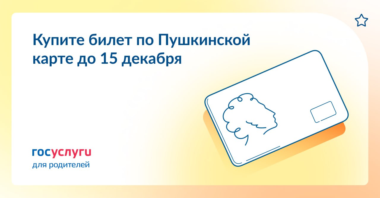 Если у вашего ребенка есть Пушкинская карта и на ней остались деньги — самое время купить билеты. Не откладывайте! Используйте выделенную ребенку сумму до 15 декабря. Лимит 2023 года можно потратить на мероприятия, которые пройдут как до, так и после 1 января 2024 года. Хотите пойти на выставку, в театр или кино после Нового года — покупайте билет по Пушкинской карте заранее. Что нужно сделать родителям