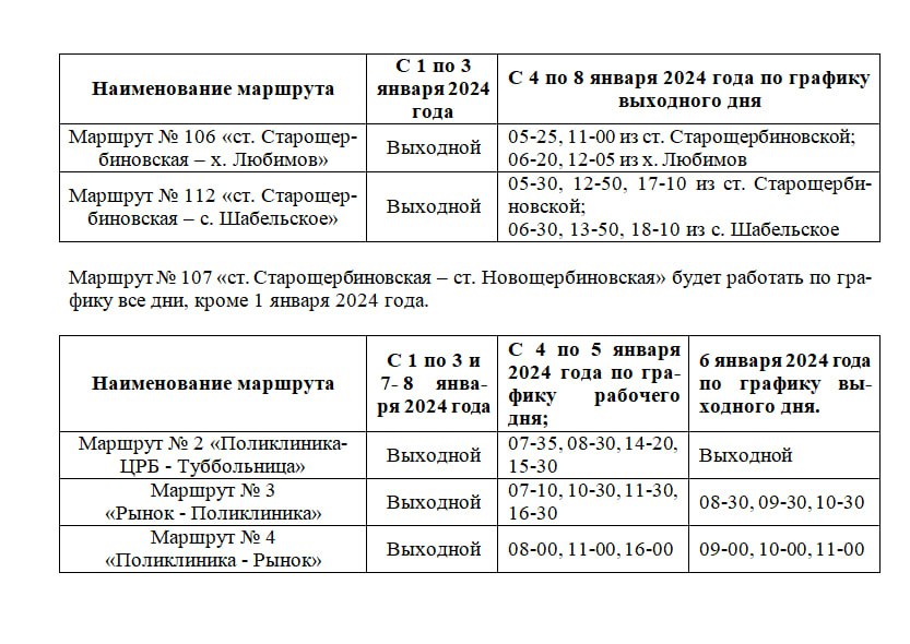 Дорогие жители, в период новогодних праздников рейсовые автобусы на территории муниципалитета будут работать по следующему графику