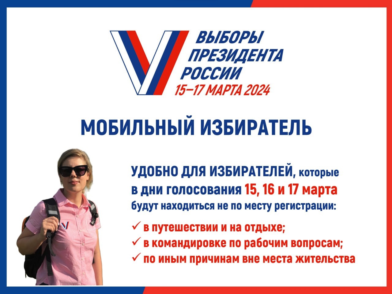 Воспользуйтесь своим правом принять участие на выборах Президента Российской Федерации в удобном для Вас месте!