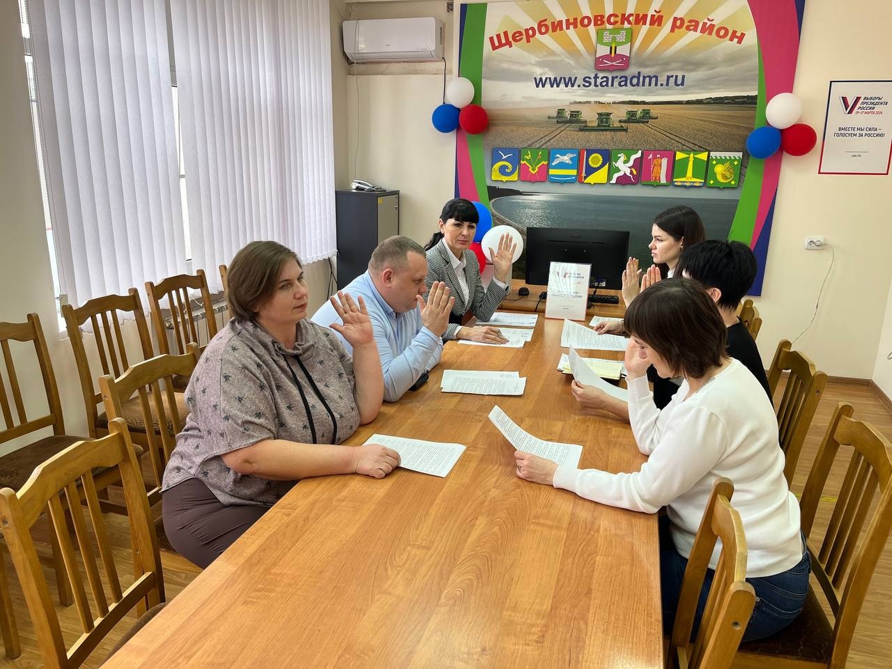 Очередное заседание территориальной избирательной комиссии Щербиновская состоялось 8 февраля 2024 года. Перед началом заседания председатель избирательной комиссии Юлия Галкина проинформировала о текущей деятельности организаторов выборов.