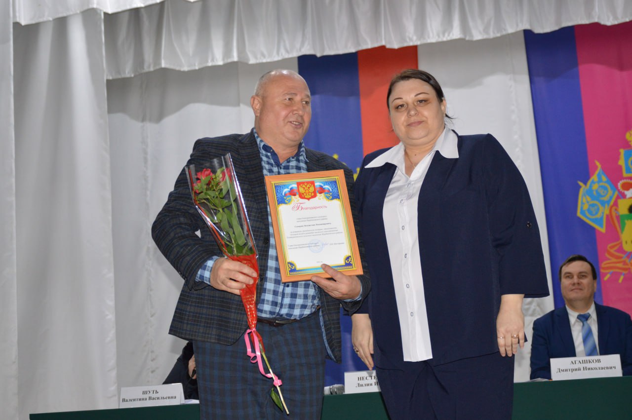 В завершении сессии за активную гражданскую позицию, большой личный вклад в развитие Екатериновского сельского поселения, а также за оказанную гуманитарную помощь и поддержку бойцов, принимающих участие в специальной военной операции заместитель главы района Дмитрий Агашков вручил Благодарности главы района активным и неравнодушным жителям сельского поселения.