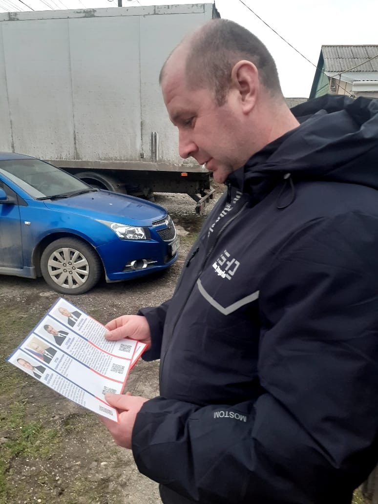 Распознать обходчика легко, у него имеется соответствующая экипировка – все участники проекта адресного информирования имеют брендированные сумки с логотипом избирательной кампании, планшет, значок-триколор.