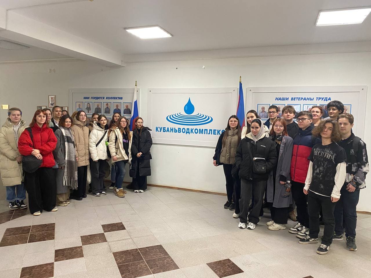 Гостей встретил и обратился к ним со вступительным словом заместитель директора предприятия Виталий Пергун. В ходе экскурсии студенты ознакомились с работой экологов на предприятии, пообщались с начальником КБИЦККВ ГУП КК «Кубаньводкомплекс» Надеждой Конных, заместителем начальника производственно-технического управления Александром Рыцаревым, начальником отдела по общим вопросам Екатериной Башкатовой и другими специалистами.