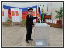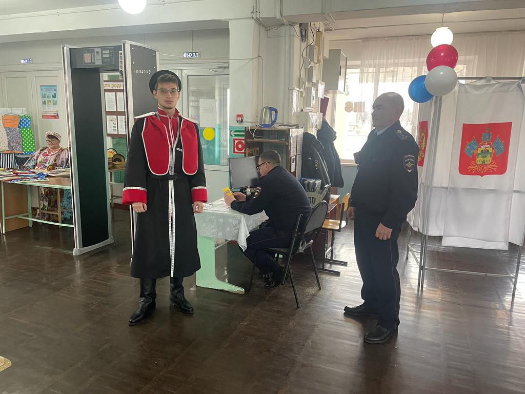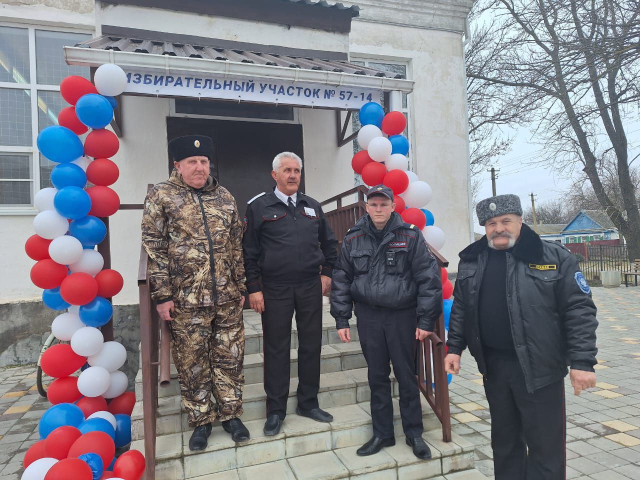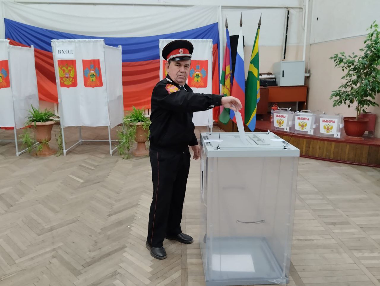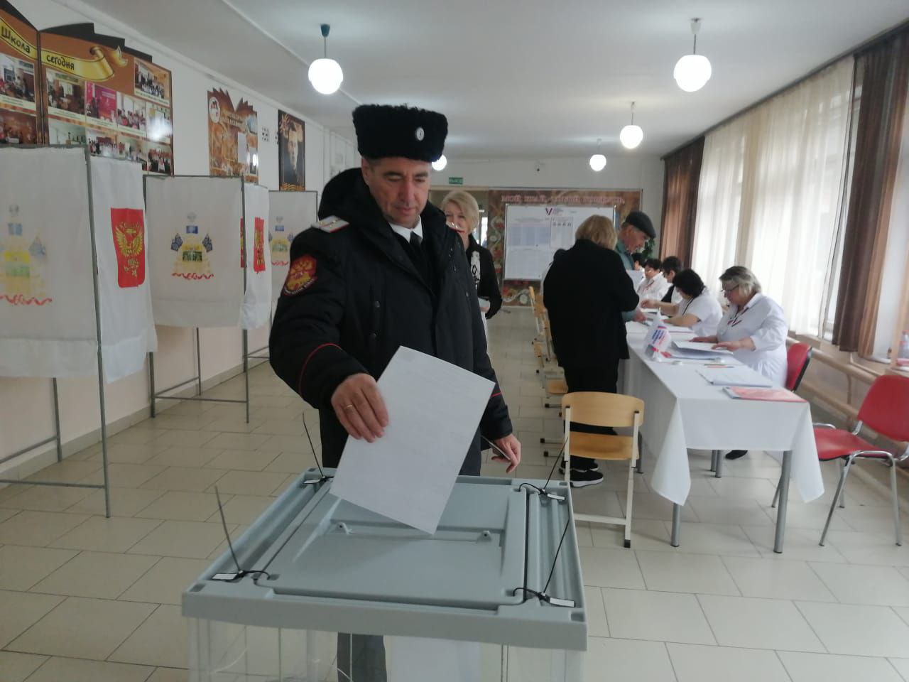 В Щербиновском районе в числе первых, кто исполняет свой гражданский долг, традиционно оказались представители казачества. Казаки вместе с правоохранительными органами также задействованы в охране общественного порядка во время выборов Президента России.
