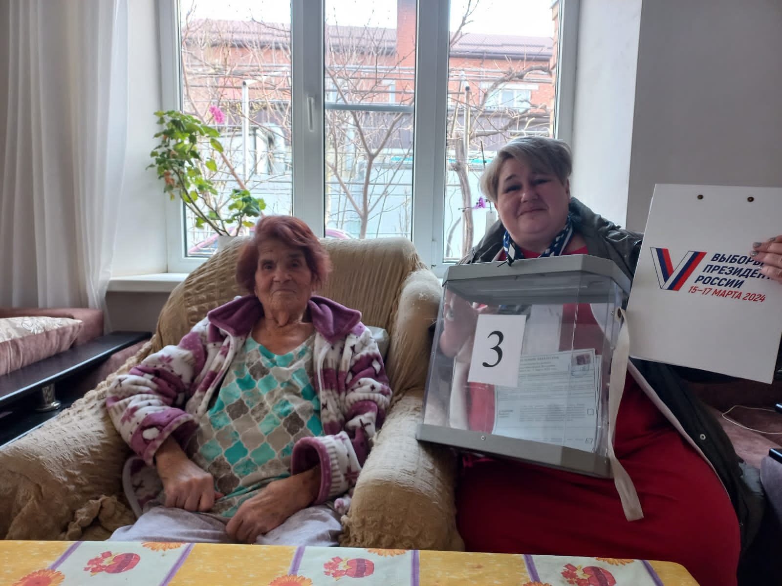 99-летняя жительница Щербиновского района проголосовала на выборах Президента